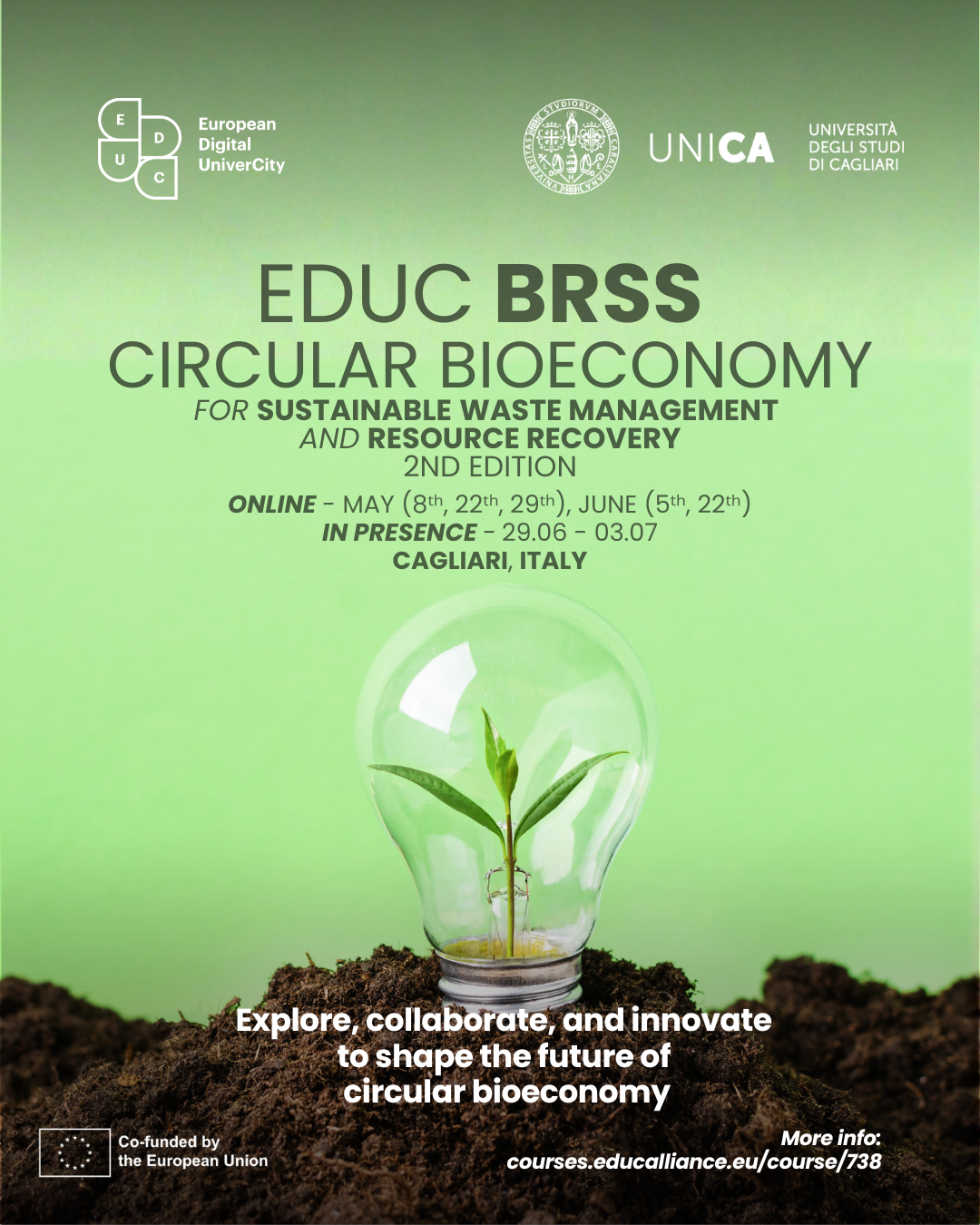 Profitez d'une immersion passionnante à l'université de Cagliari en Italie. Rejoignez l'école d'été de recherche hybride EDUC Circular Bioeconomy for Sustainable Waste Management and Resource Recovery du 29 juin au 03 juillet 2026!